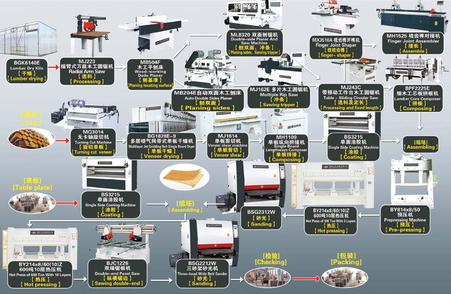 Blockboard production line process flow diagram